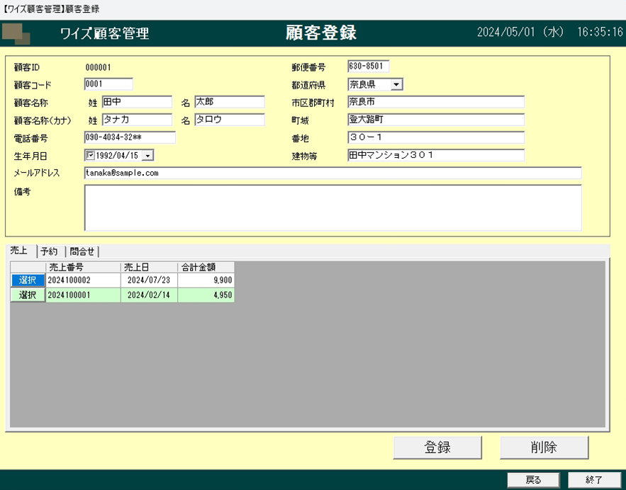 情報を共有し対応履歴やアンケートからお客さまからのご要望、ご意見を店舗運営に反映します。店舗に電話予約などが入った場合はこのソフトに登録することにより店舗スタッフの誰が見てもすぐに過去の来店状況などが分かります。